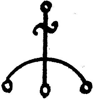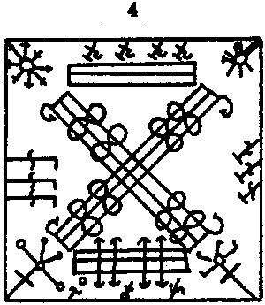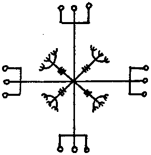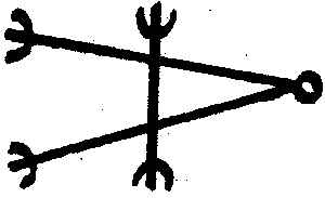 крестообpазные знаки с расходящимися линиями на концах. Вот одна из