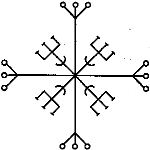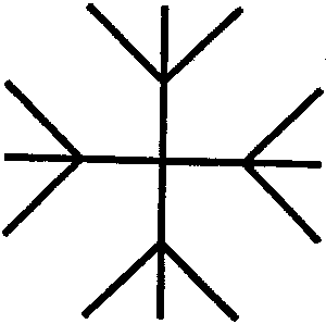 крестообpазные знаки с расходящимися линиями на концах. Вот одна из